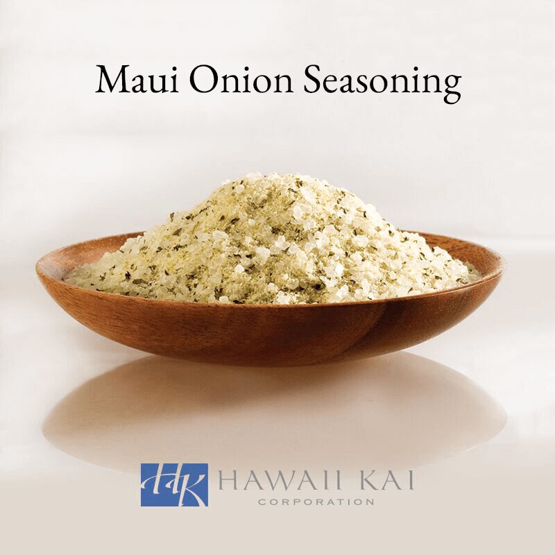 Maui Onion Seasoning • Maui’s signature sweet onions are legendary for their exquisite flavor and mild intensity. There’s even an annual Maui Onion Festival in Kaanapali, where people eat them like apples! We make dehydrated fresh, raw, Maui Sweet Onions at our salt farms on Molokai, then blend the flakes with our Palm Island Premium White Silver sea salt. Superb on roasted chicken, grilled shrimp, deviled eggs, popcorn, and brown rice. Stir it into sour cream for a delicious dip.